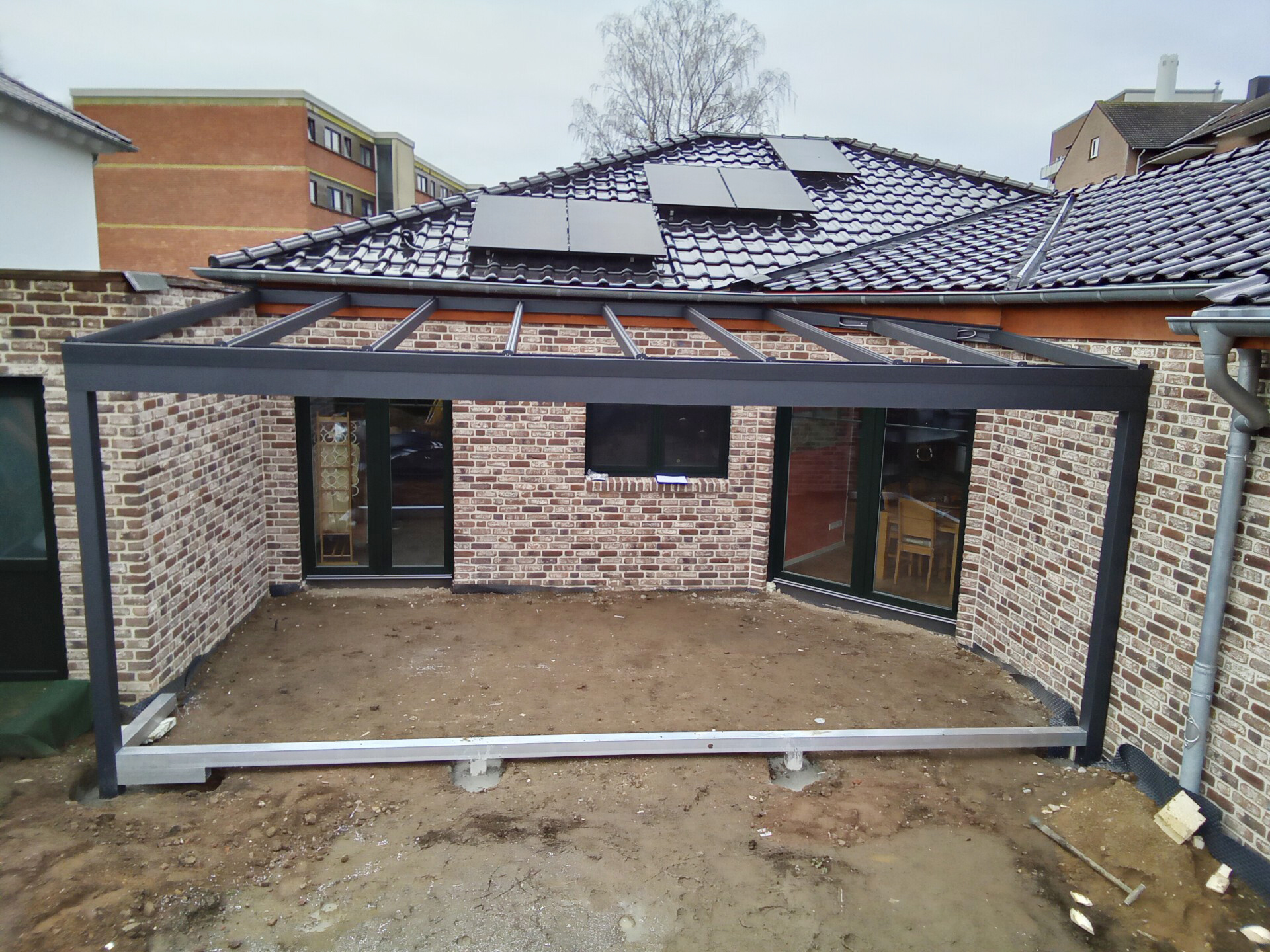 Alu Kaltwintergarten Sonderbau – unsere Montageteams sind Tag für Tag quer durch die Republik unterwegs, um Kunden glücklich zu machen. Ob Alu Terrassendach, Alu Kaltwintergarten oder Alu Carports – unsere Terrassendach Systeme überzeugen durch Qualität. In Kamp-Lintfort – am unteren Niederrhein gelegen – ging es um eine gewünschte Sonderlösung – Alu Terrassendach mit schrägem Wandprofil – kein Problem für uns, denn dafür ist die Produktlinie von Clever Überdacht genau richtig!