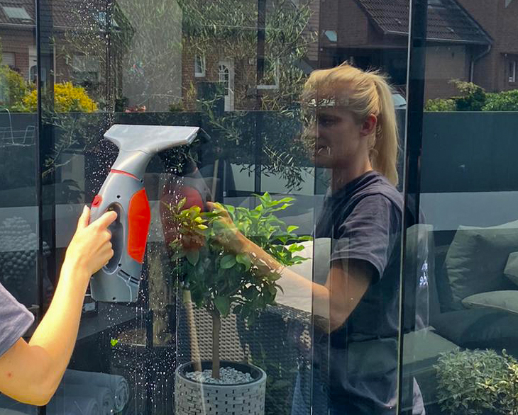 Sie haben Glasschiebewände unter der Terrassenüberdachung? Diese können wie die Fensterscheiben des Hauses gereinigt werden. Wichtig: Vergessen Sie nicht die Bodenschienen – ein kurzer Staubsaugereinsatz sollte reichen. Jetzt laufen die Glaspaneele wieder wie „geschmiert“.