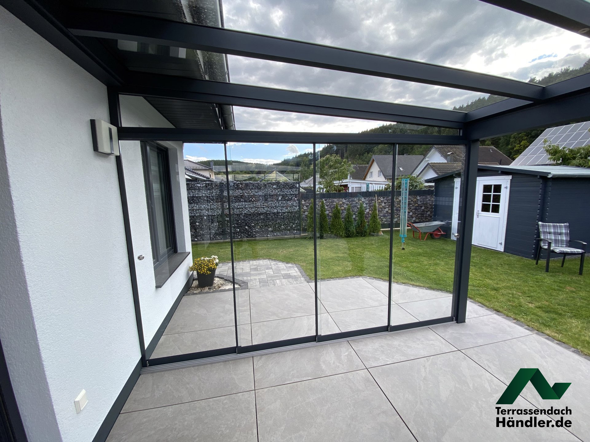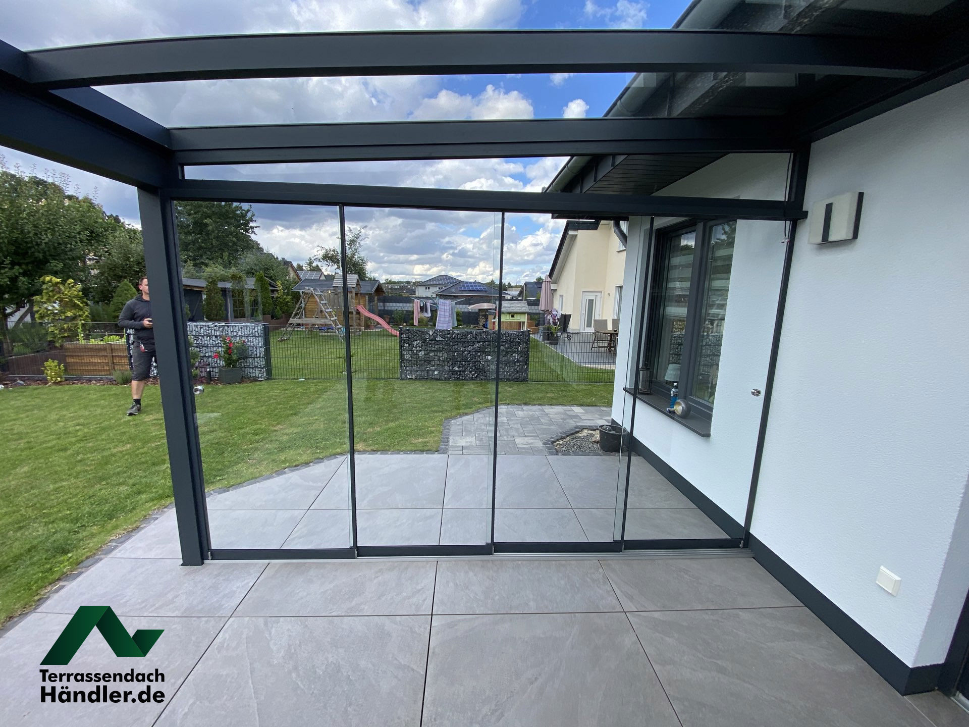 Großzügiges Terrassendach mit Glasschiebeelementen