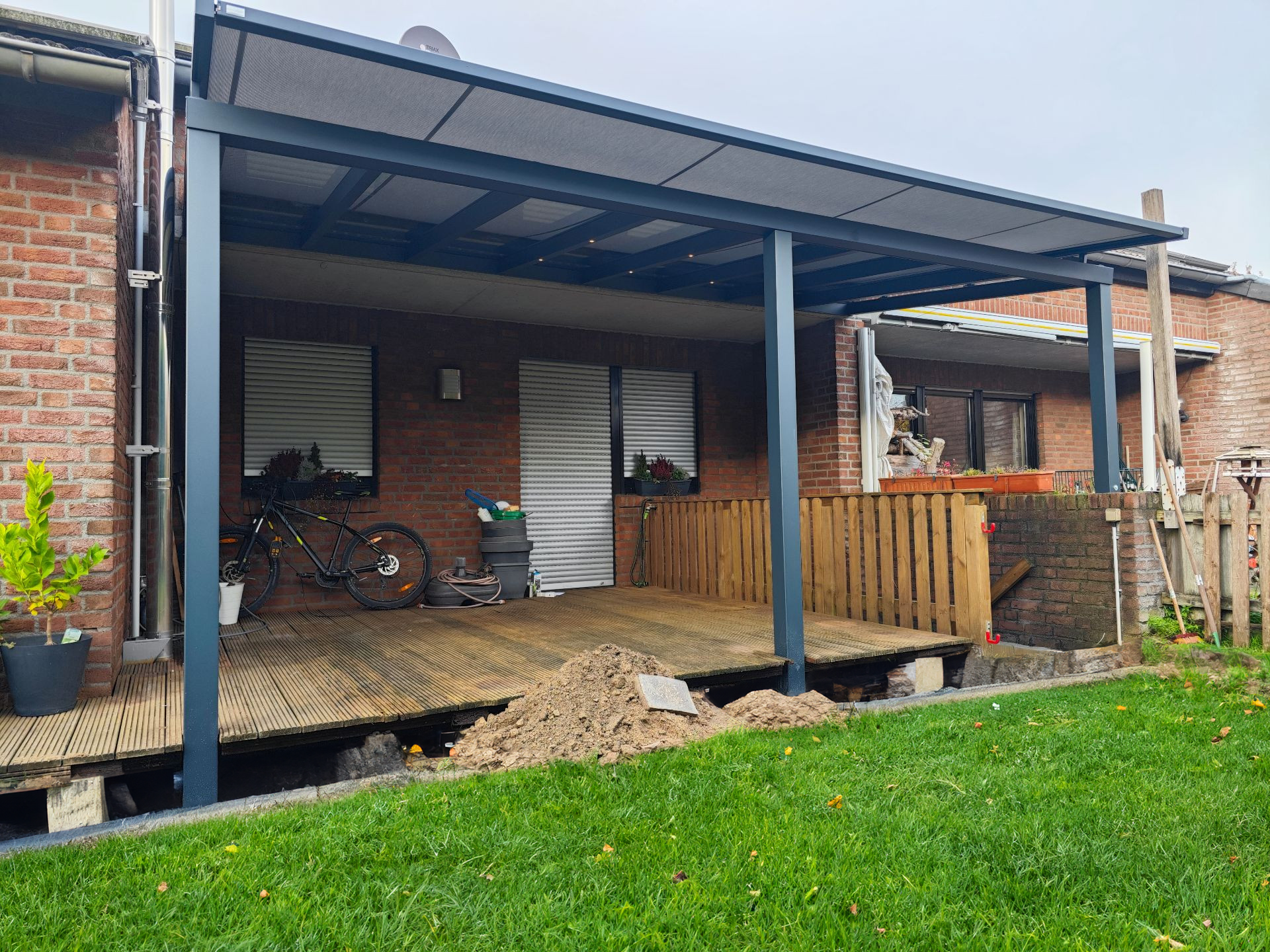 Hochwertiges Terrassendach mit überdachtem Kelleraufgang