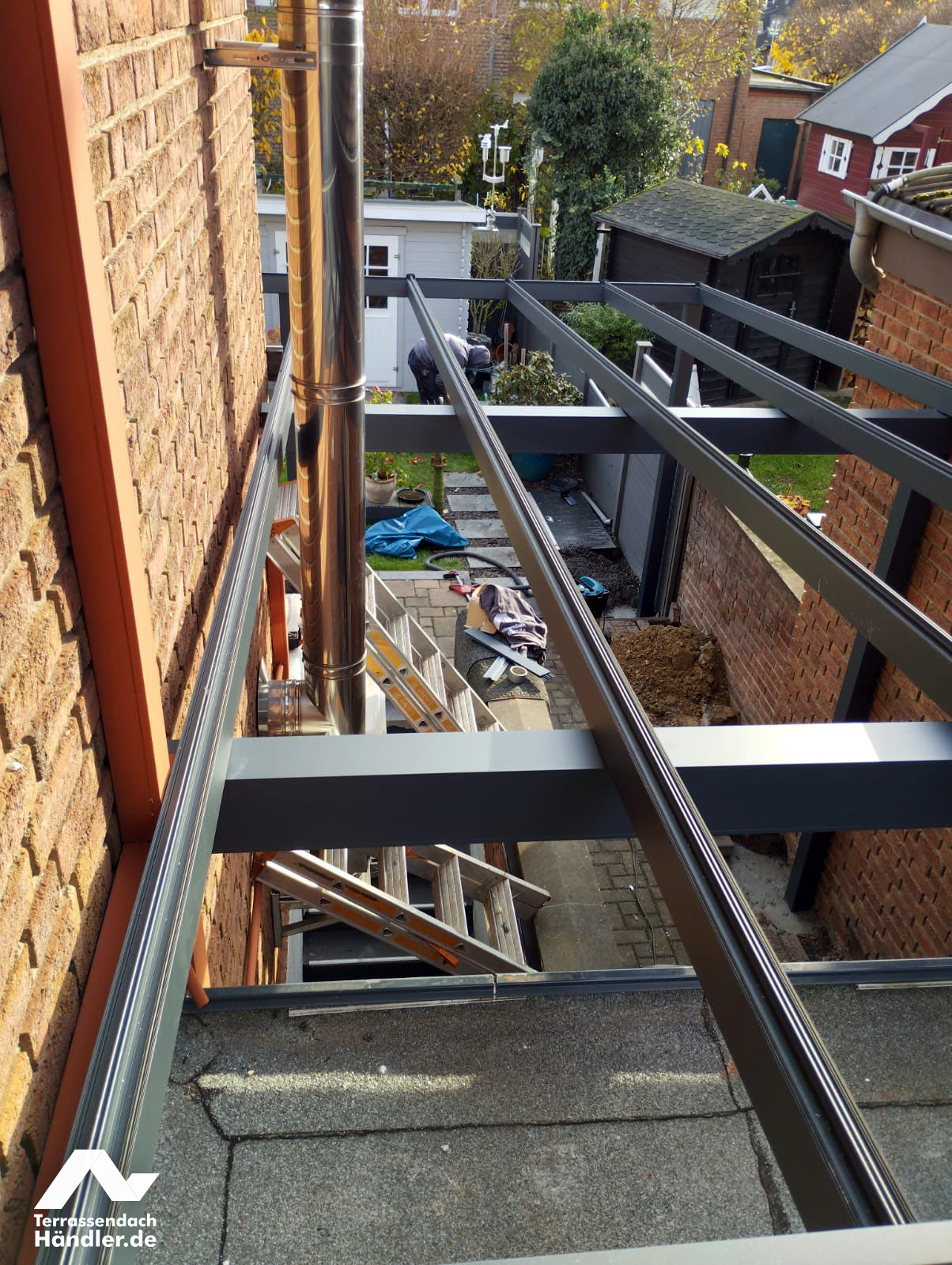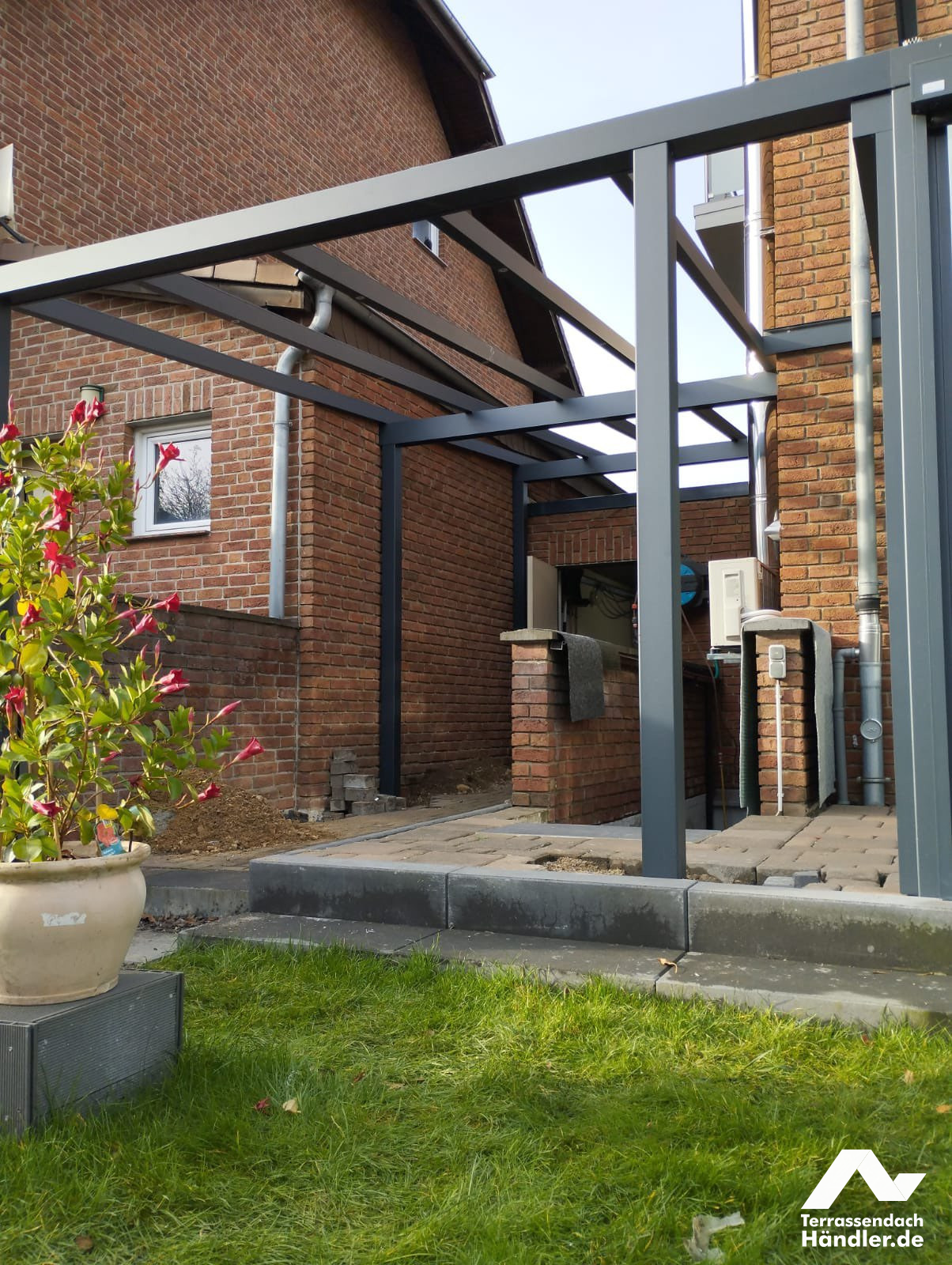 Freistehend: Überdachung wird statisch verstärkt und unterstützt um eine freistehende Lösung zu schaffen.