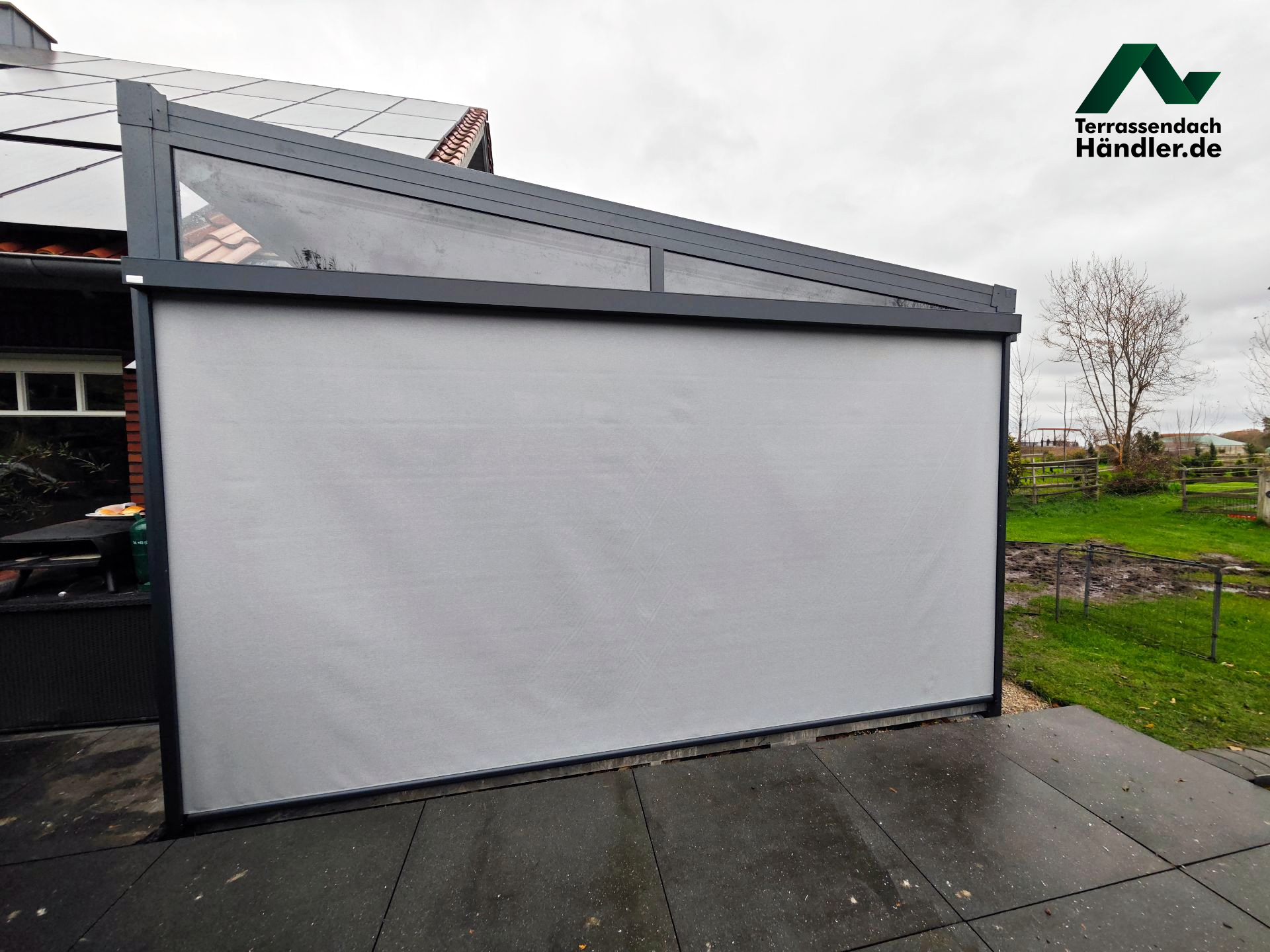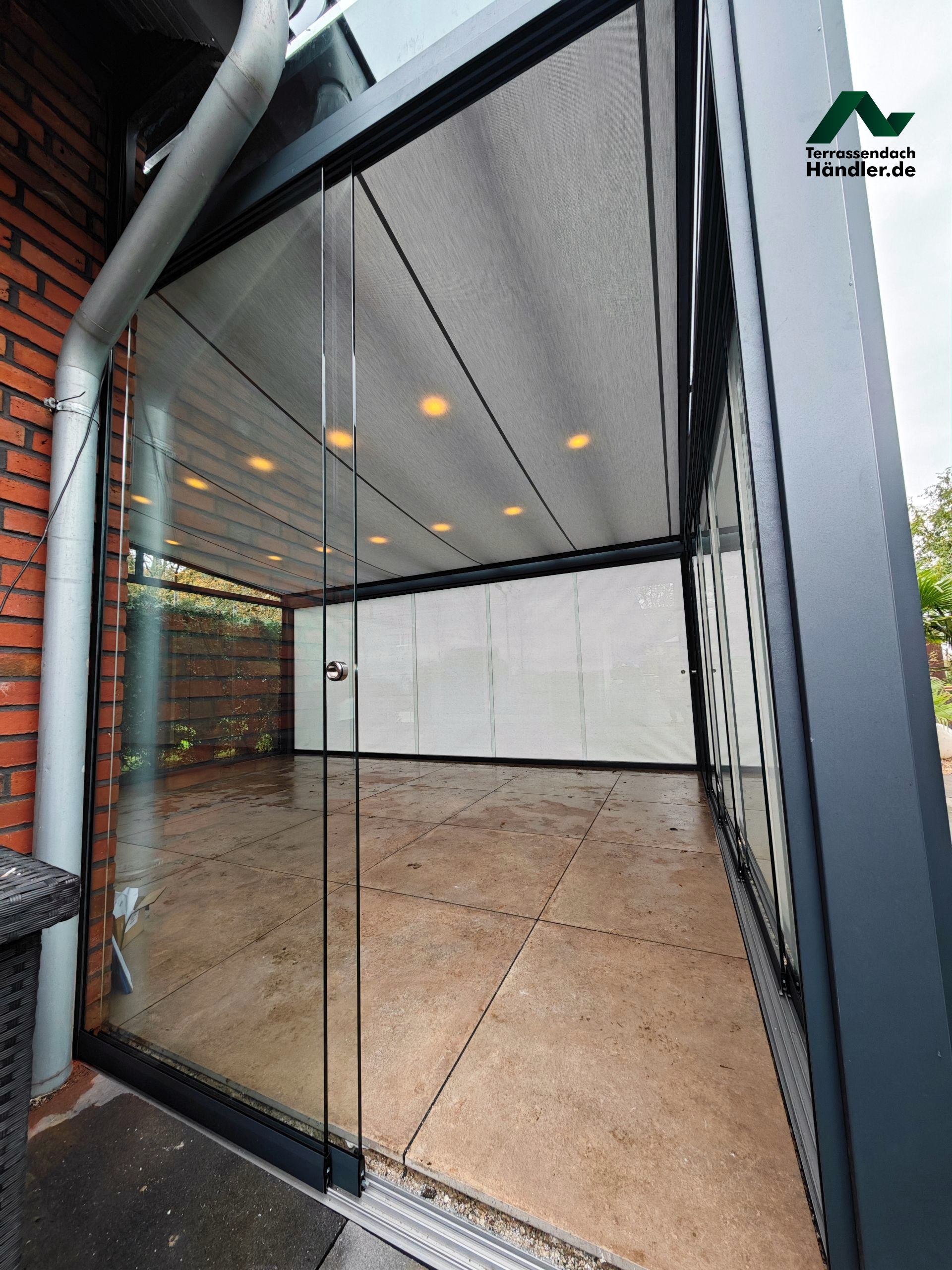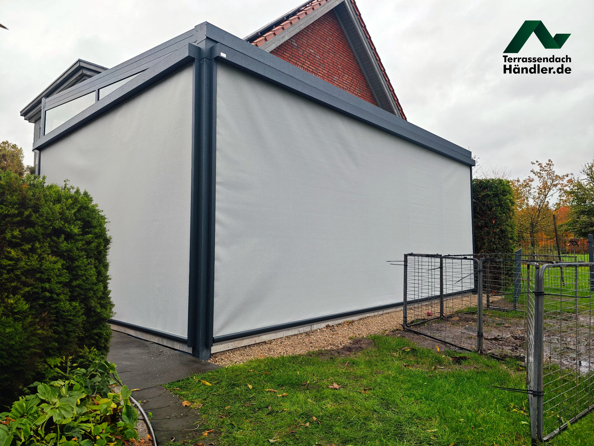 Im westlichen Münsterland zwischen Berkel und Ölbach liegt Vreden quasi am Übergang von norddeutscher Tiefebene zum Niederrhein. Eines unserer Teams baute nach Aufmaß in zwei Abschnitten diese hochwertige und individuell gefertigte Überdachung. Mit 6×4 Meter ein stattlicher Kaltwintergarten – hergestellt in deutscher Manufaktur. Für mehr Sicht- und Sonnenschutz wurden sowohl Senkrechtmarkisen als auch eine Unterdachmarkise verbaut.